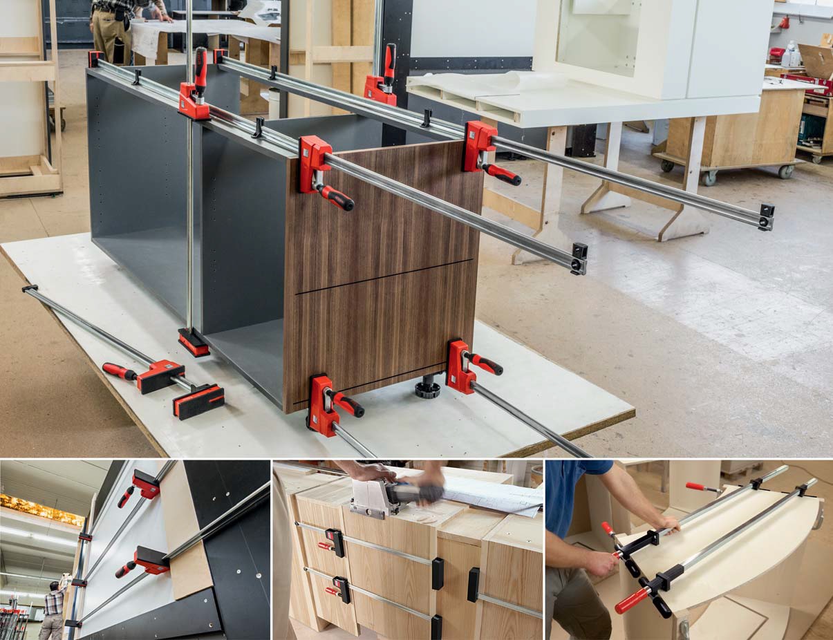 Sehr große, parallele Spannflächen – Optimale Kraftverteilung – Wechselbare Schutzkappen – Gleitbügel werkzeuglos umsteckbar zum Spreizen