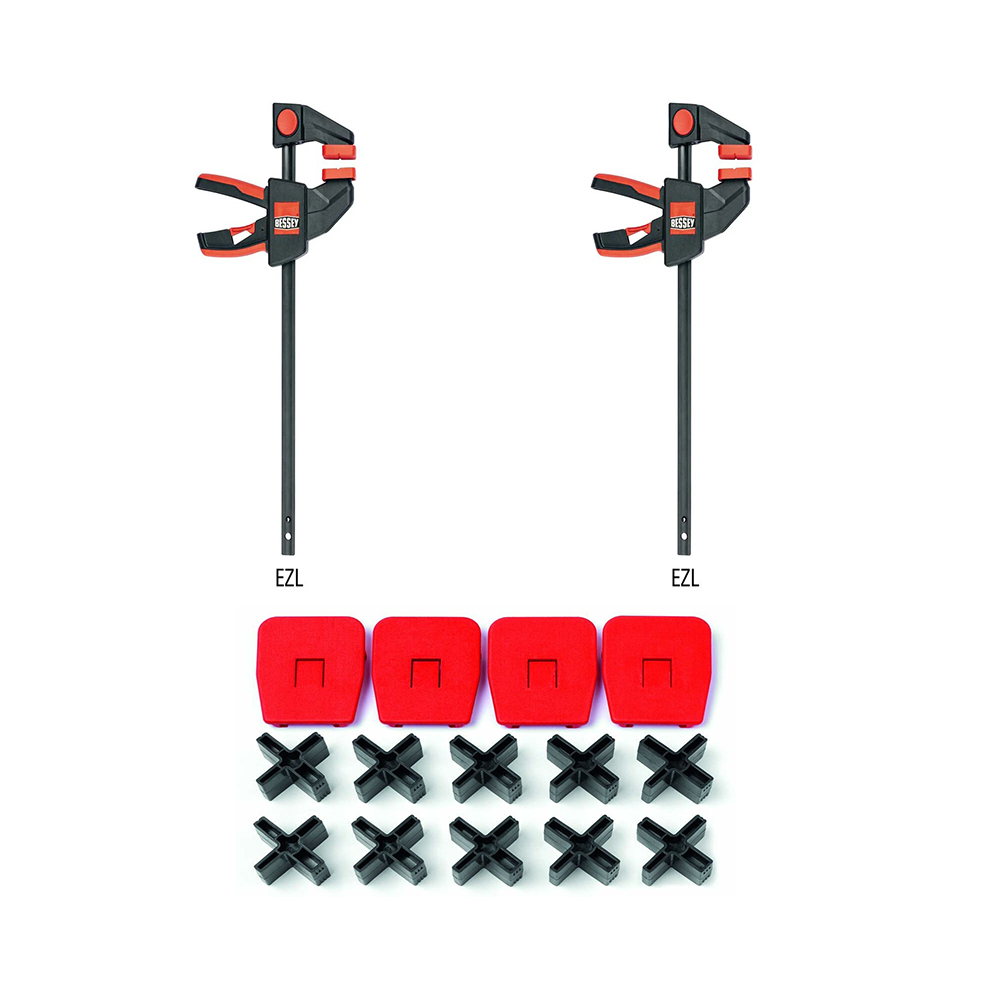 BESSEY Terrassen-Montage-Bundle – 2× Einhandzwinge EZL60-8 + Montageset EZ-TD