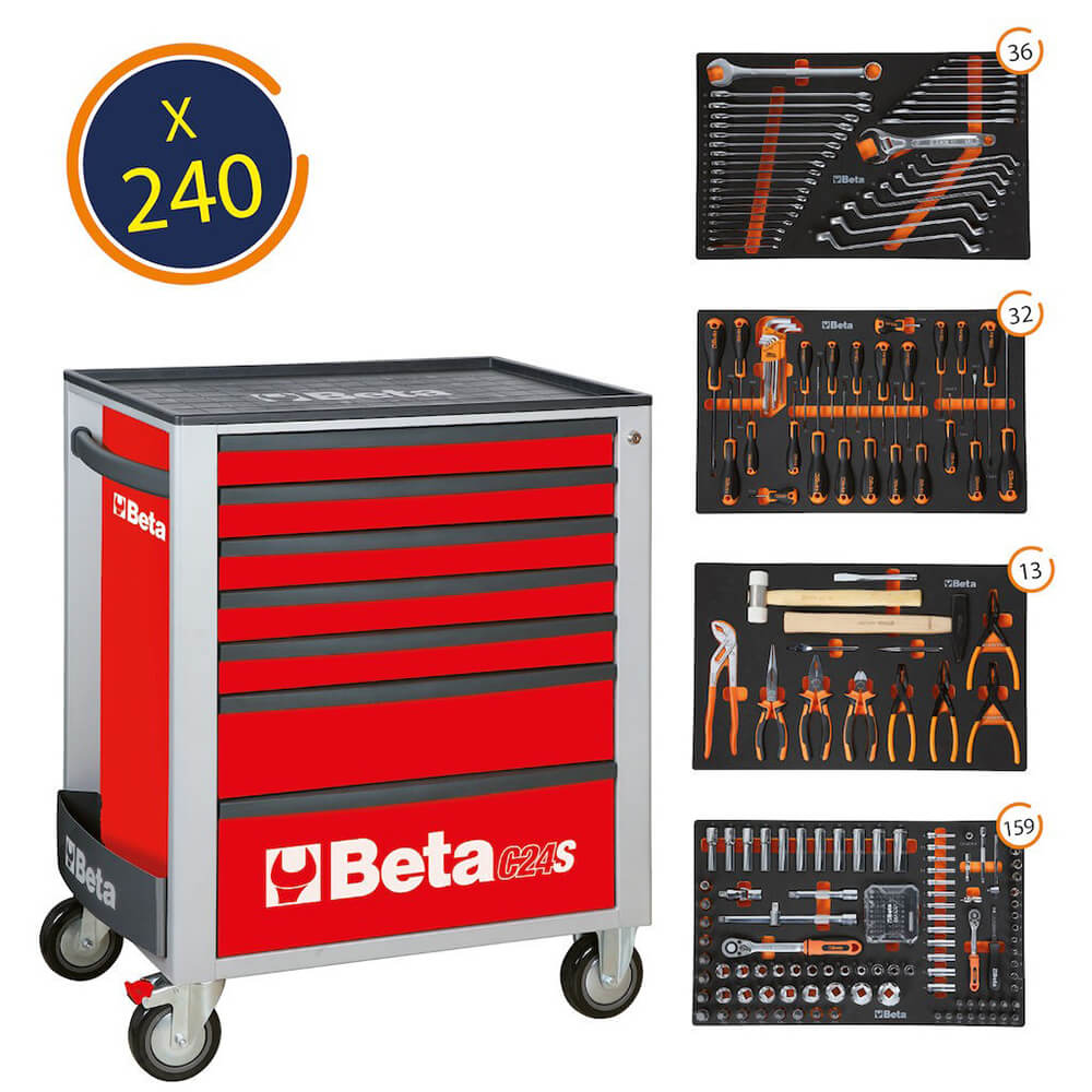 BETA WORKER WERKZEUGWAGEN BWC24S7 Rot + 240TLG SORTIMENT