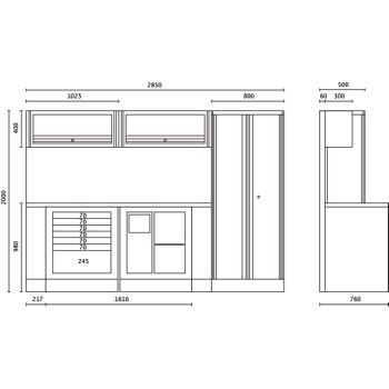 Abmessungen: H 2.000 x B 2.850 x T 500 mm