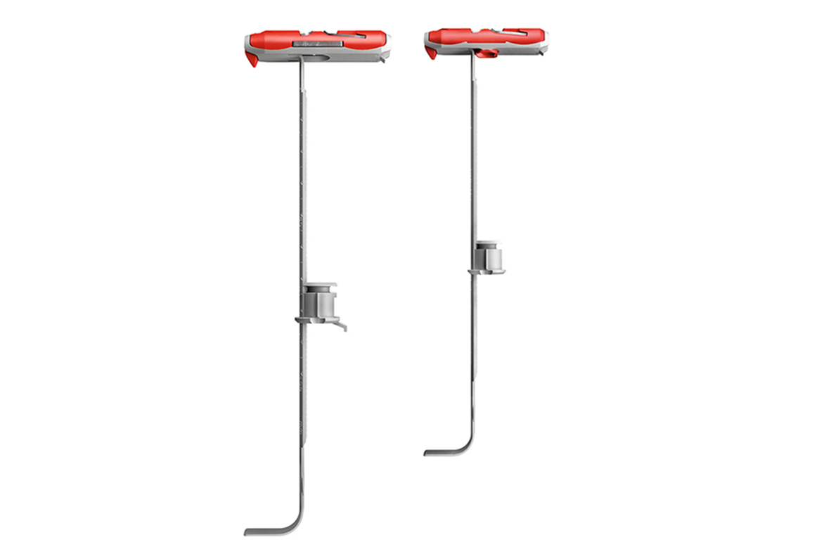 – Mit Skala am Zugband (fischer DUOTEC 12) zur Ermittlung der erforderlichen Schraubenlänge (Skalenwert + 20 mm).