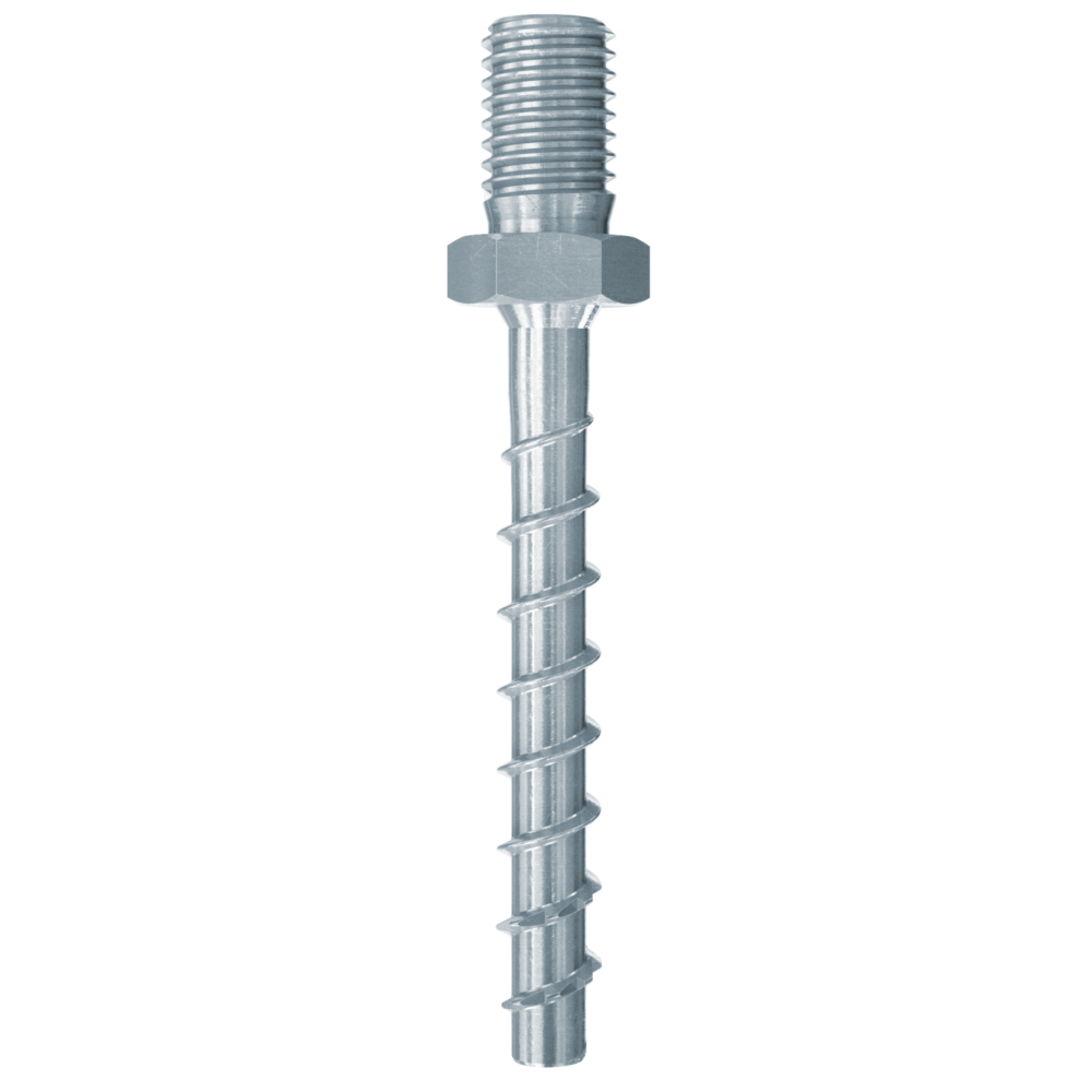 Die fischer Betonschraube ULTRACUT FBS II 6 M8/M10 ist eine Verankerungslösung aus galvanisch verzinktem Stahl mit einer Stockschraube (M8/M10-Außengewinde).