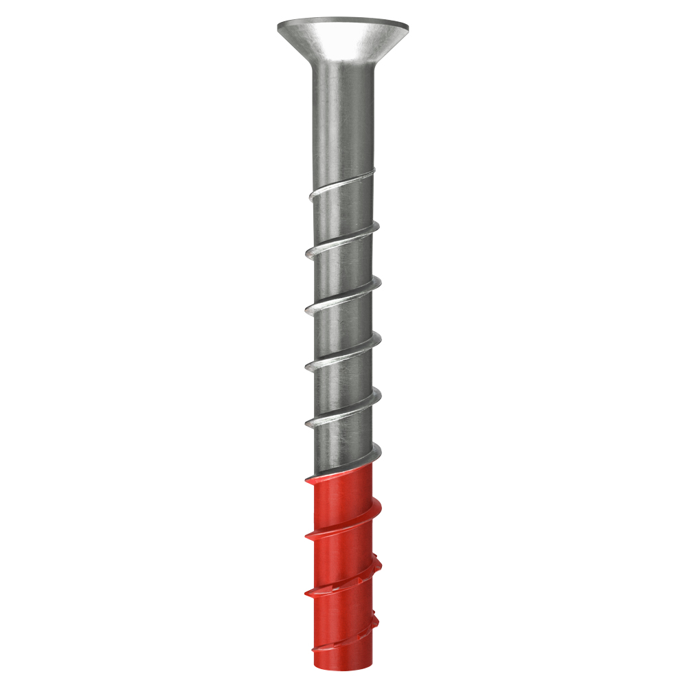 Die fischer Betonschraube ULTRACUT FBS II SK A4 mit der speziell gehärteten roten Spitze, ist eine leistungsstarke Verankerungslösung für eine schnelle Montage.