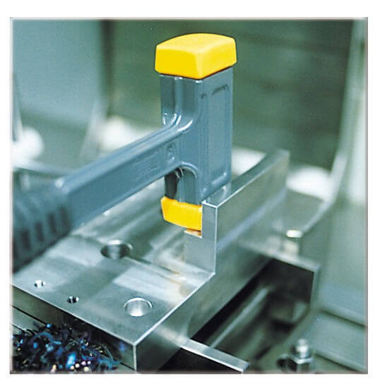 mit ergonomisch geformtem Gummigriff und stabilem Stahlblechgehäuse, Einsätze Polyurethan, gelb, rechteckig, mittelhart. Für Montage-/Reparaturarbeiten im Kfz-Bereich.,Positionieren von Werkstücken im Schraubstock, Möbelbau, Fenster-/Türenbau, Parkett-/Laminatverlegung, Schreinerei, Gehäusemontage, Karosseriebau, Blechbearbeitung, Ausbeularbeiten