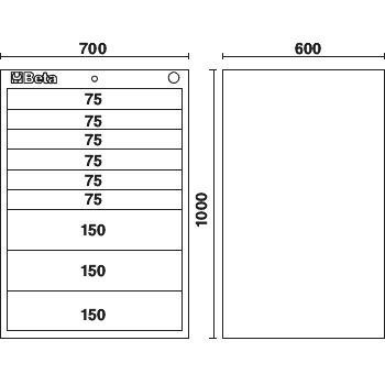 • Neun Schubladen, 600×447 mm, ganz herausziehbar