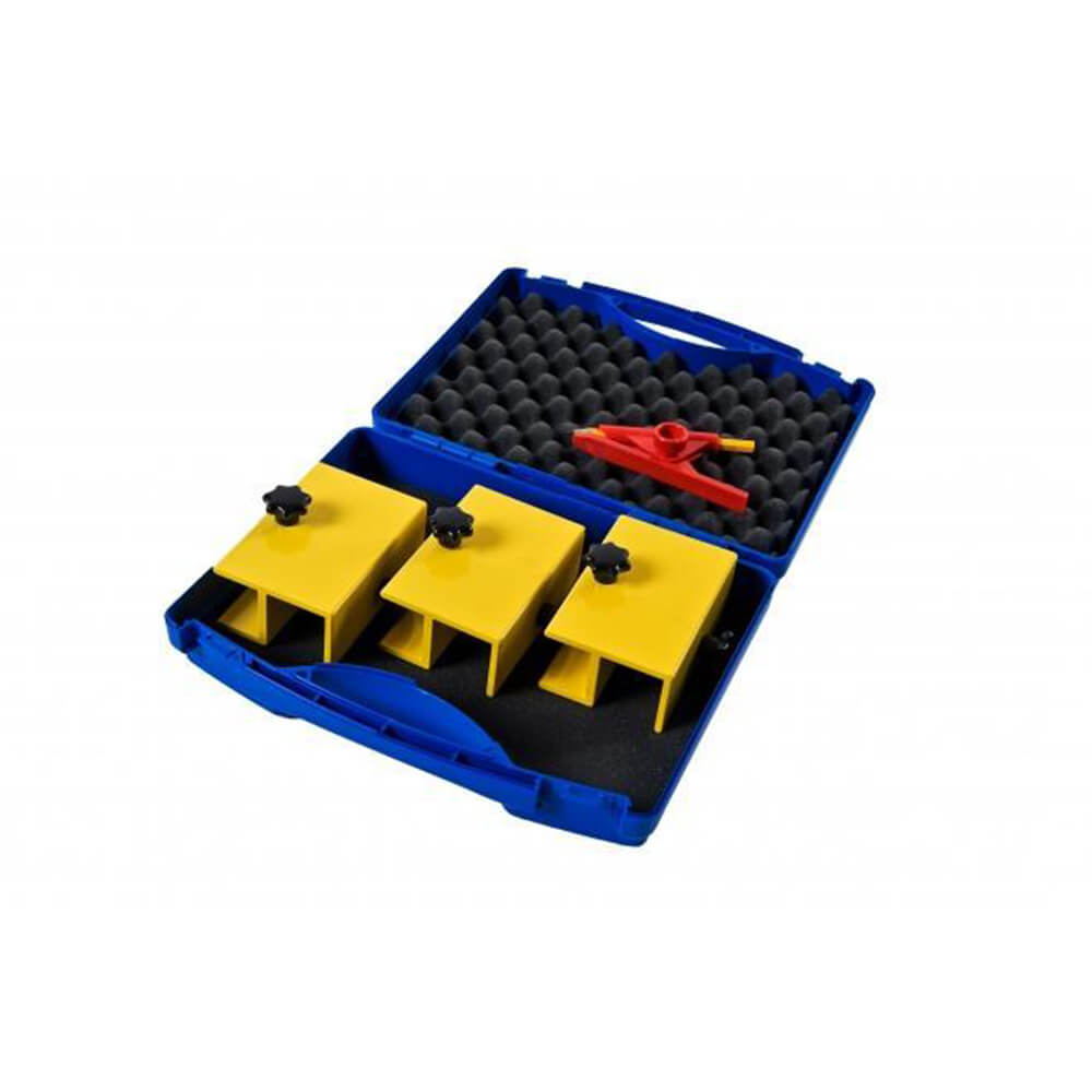 Lieferumfang: 3x Aluminium- Spannelemente, 1x Parallelanreißer, 1x PVC-Koffer mit Weichschaumeinlage