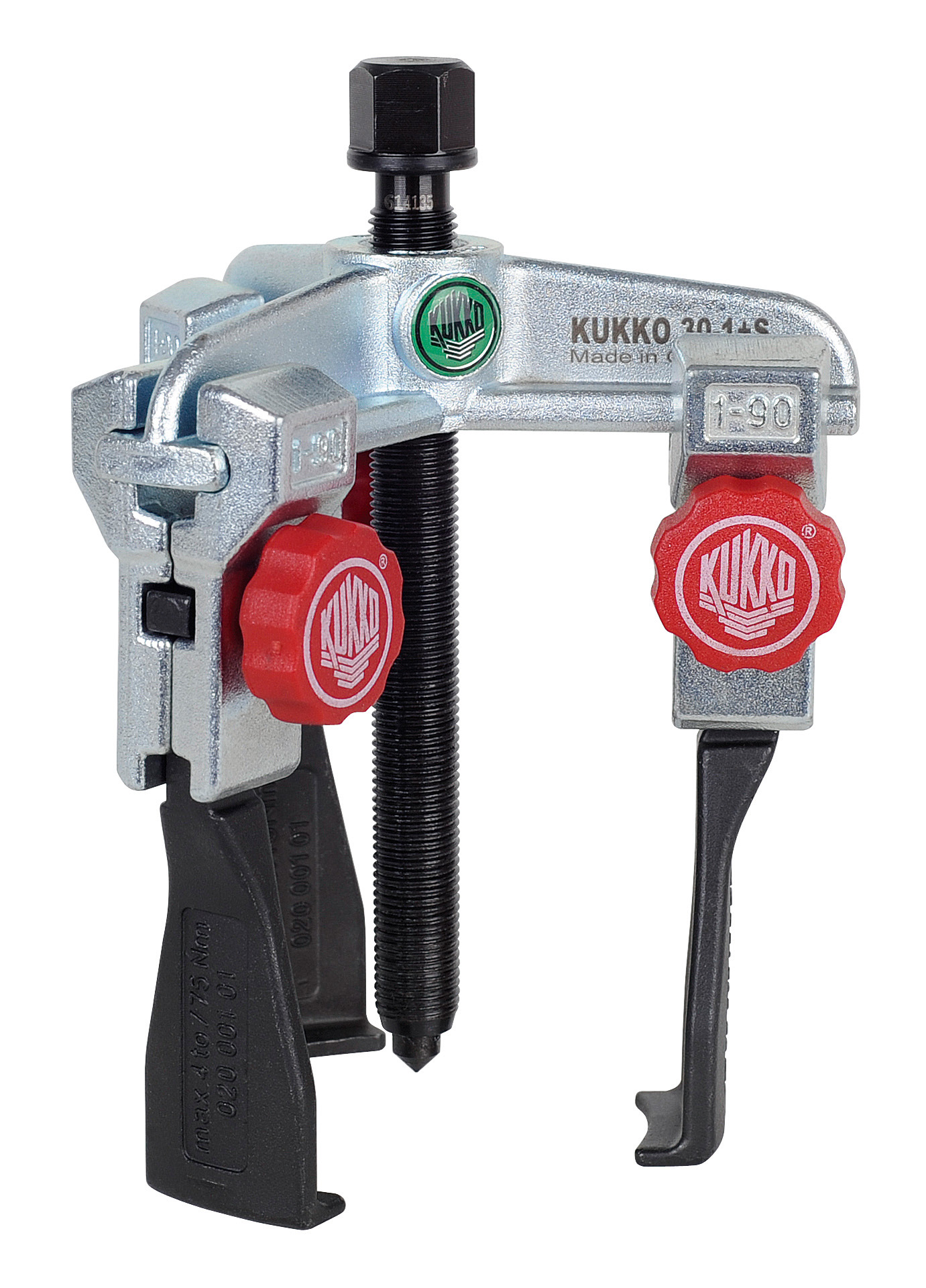 Spannweite (mm): 160, Spanntiefe (mm): 150, Sechskant (mm): 17, Aussenspannweite (mm): 100-220, max. to: 5. Die Handstellrändel ermöglichen ein schnelles Lösen und Verschieben der Abzughaken ohne Schraubenschlüssel. Durch die schmalen S-Abzughaken besonders geeignet für enge, schwer zugängliche Stellen. Die Dreiarmigkeit garantiert gleichmäßige Lastenverteilung und dadurch besonders sicheren Halt am abzuziehenden Teil. In jeder Position, selbst unter Vollbelastung, parallele Abzughaken. Das abzuziehende Teil liegt ausschließlich auf den großen Auflageflächen (C) der Abzughaken und wird dadurch schonend abgezogen. Auf der Traverse stufenlos verschiebbare Abzughaken. Die Traversen besitzen ein Sechskantprofil an dem bei Bedarf ein Schlüssel zum Gegenhalten angesetzt werden kann. Die Spindelköpfe sind mit einem Bund versehen, der verhindert, dass der Schraubenschlüssel beim Abziehvorgang abrutscht. Die optional verfügbaren Haken-Verlängerungen ermöglichen ein problemloses Erhöhen der Spanntiefe.