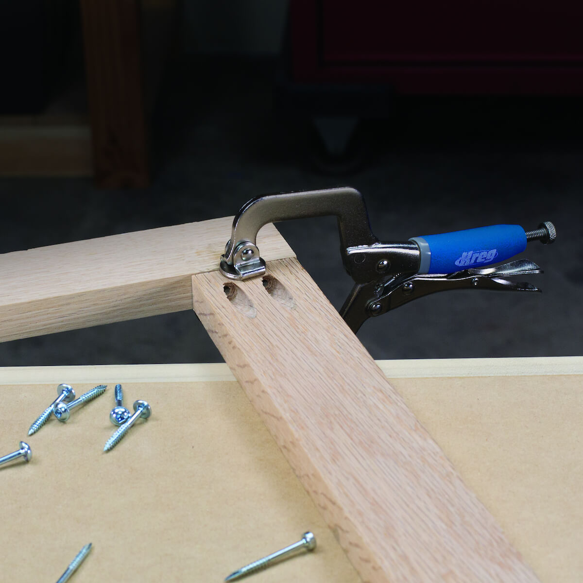 Klassik Schnellspannzwingen wurden für das einfache verschrauben einer Taschenlochverbindung entwickelt und eignen sich hervorragend für viele andere Spannmöglichkeiten, bei denen eine stabile Klemmung erforderlich ist. Die Zwingen verfügen über große Spannflächen, die die Klemmkraft gleichmäßig verteilen und die Teile bei der Montage bündig halten.