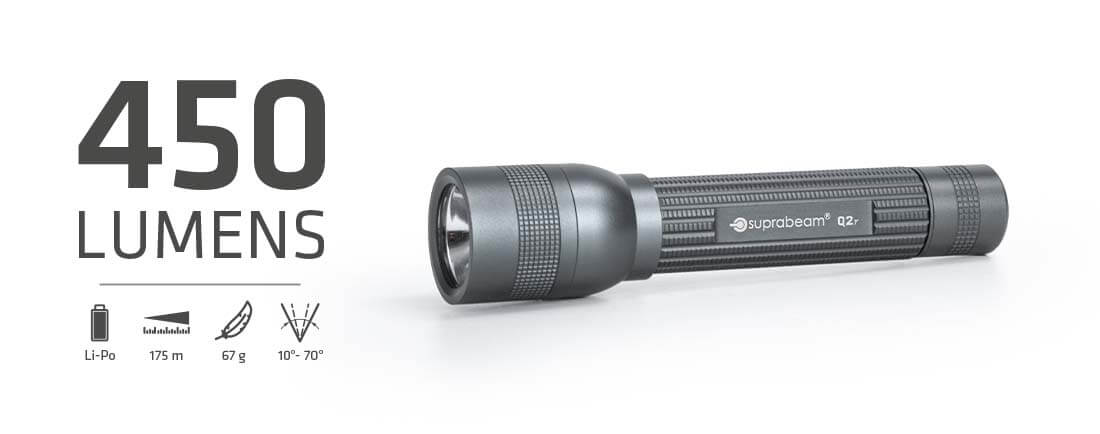 Aufgrund seiner beeindruckenden Größe und Lumenleistung ist der Q2r die richtige Wahl, unabhängig von der jeweiligen Aufgabe. Die Taschenlampe passt genau in eine Tasche und die 450 Lumen reichen aus, um jede Situation zu beleuchten.