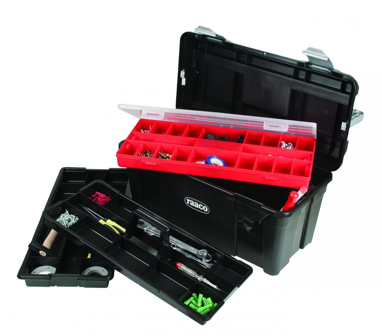 – Werkzeugkoffer mit zwei herausnehmbaren Werkzeugträgern